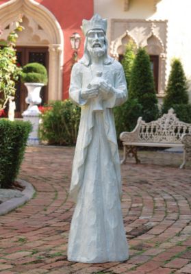Your garden may become as legendary as the grail itself when you set this regal, over four-foot-tall sculptural investment as its centerpiece! Our oversized Toscano-exclusive sculpt transforms the mystical tales of King Arthur's quest into a breathtakingly detailed sculpt complete with crown and cup. Cast in 17 lbs. of quality designer resin, it boasts an antique stone finish that commands attention. 14"Wx13"Dx49½"H. 17 lbs.
